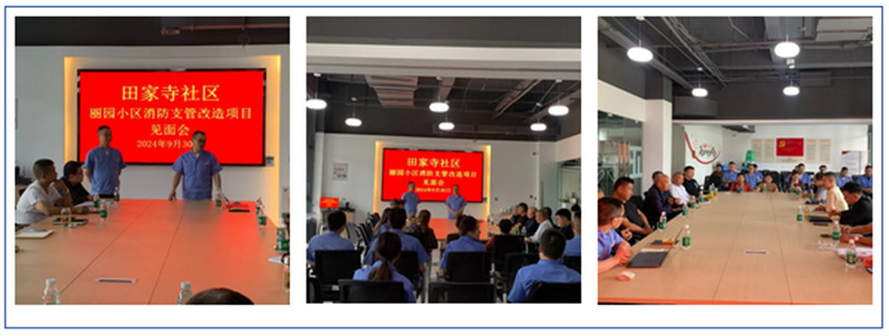 9月30日,公司負責人及全體現場人員同甲方代表在社區(qū)開展“田家寺社區(qū)麗園小區(qū)消防支管改造項目見面會”,深入探討施工過程中各細節(jié),及時發(fā)現和杜絕可能存在的問題,*在影響小的情況下保質保量完成項目。